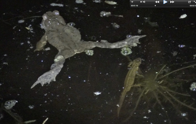 Erdkröte und kleiner Teichmolch oder Fadenmolch ???? Früher gab es mal Kammmolche sagt der Tümpelbesitzer ...